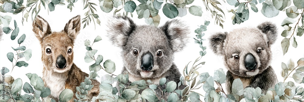 Naklejka na szafę - UROCZE AUSTRALIJSKIE ZWIERZĘTA W AKWARELI #1647419783