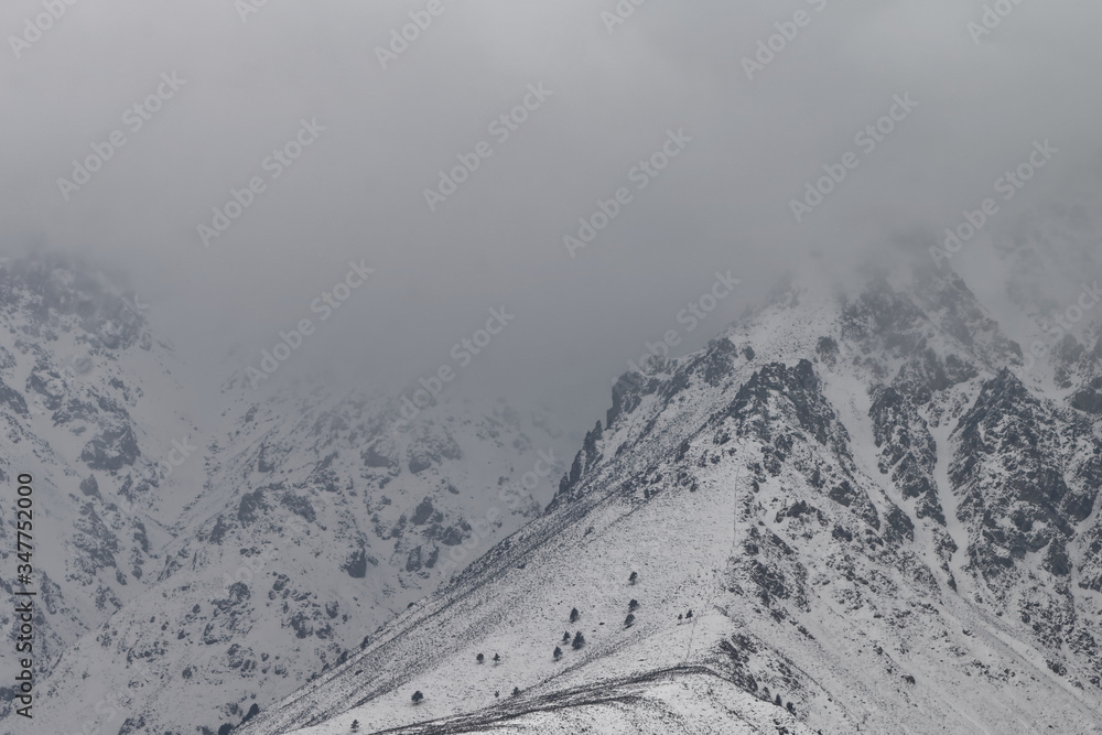 Naklejka na szafę - Zamglone góry z ośnieżonymi szczytami #347752000