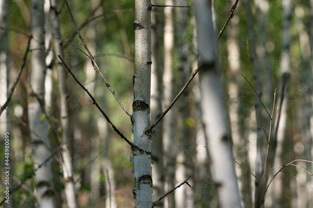 Naklejka na szafę - Tekstura utworzona przez cienkie, białe pnie młodych drzew w zagajniku brzozowym. #448980095