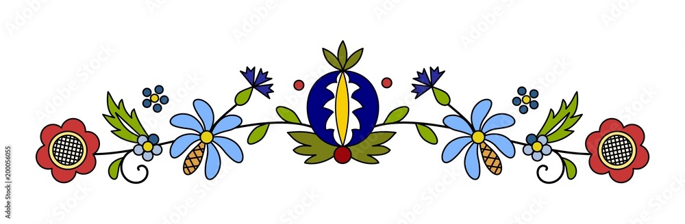 • Traditional, modern Polish - Kashubian floral folk decoration vector - wzór kaszubski, haft kaszubski, wzory kaszubskie