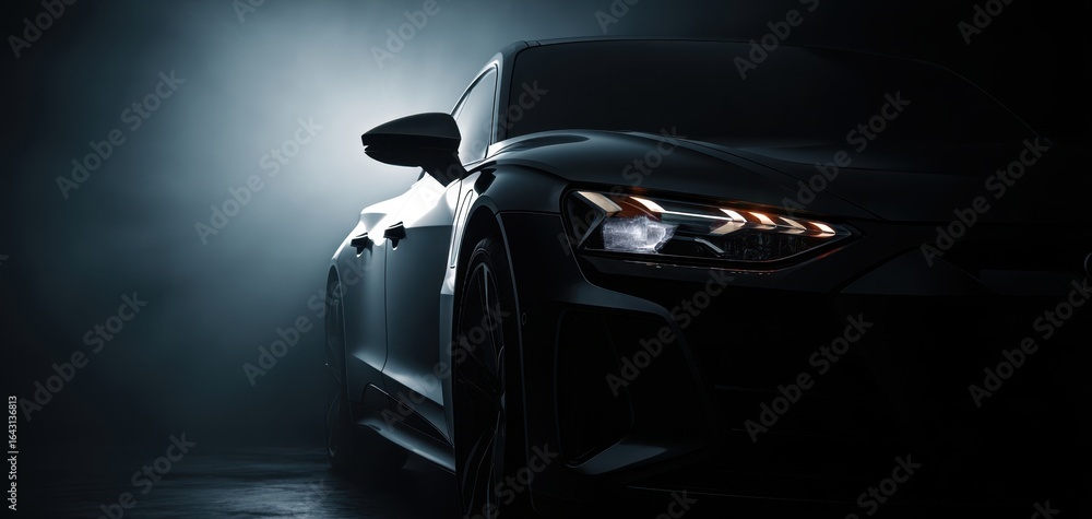 Plakat do Fitness Clubu - The sleek black sports car illuminated in dramatic low light. #1643136813