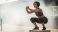 • Athletic African American woman performing a deep squat on a plyo box. Fitness and strength training workout. Motivation and determination concept with copy space