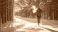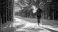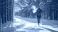 • Jogger in winter gear athletic man jogging on snowy forest road in cold weather, visible breath in frosty air, wearing thermal running clothes, concept of healthy lifestyle, endurance and motivation