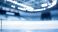 • bleachers. Empty ice rink with cool blue tones and blurred stadium seating, atmospheric and serene. event key visuals, club posters, designed for sports event promotions and stadium branding.