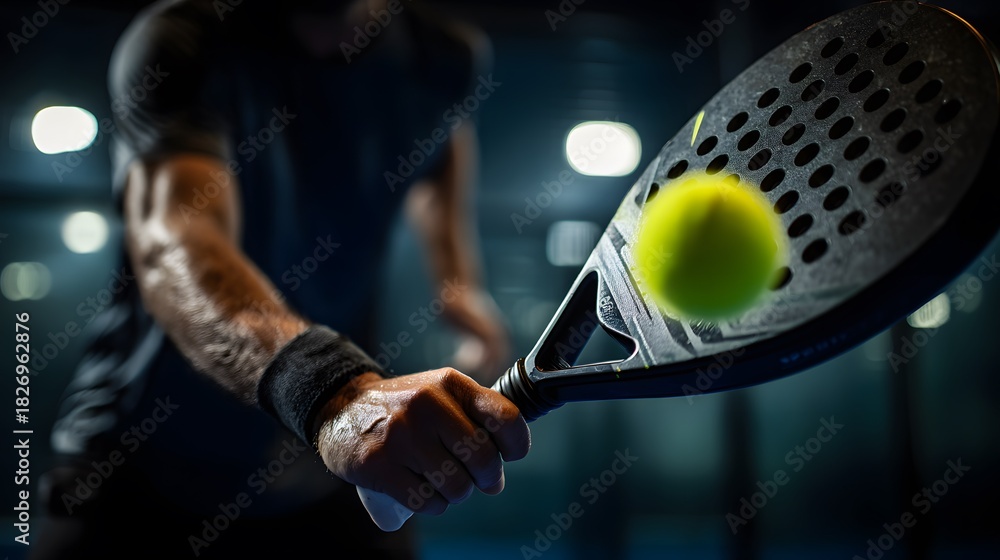 Plakat do Fitness Clubu - Padel Racket Close-Up Striking Fast Ball #1826962876