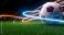 Plakat do Fitness Clubu - Soccer ball with neon lights on green grass #1828114154