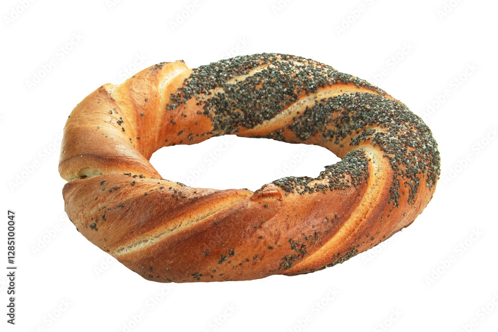 • Obwarzanek z makiem, precel na białym tle. Bez tła