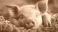 • A charming close-up of a sleeping piglet nestled in hay, conveying innocence and tranquility, showcasing the beauty of life in its most serene form.