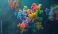A vibrant, abstract artwork depicting three colorful, spherical molecular structures against a teal backdrop. The central structure is the largest and most detailed, showcasing a rainbow of colors od 0,00 zł Dopasuj i kup
