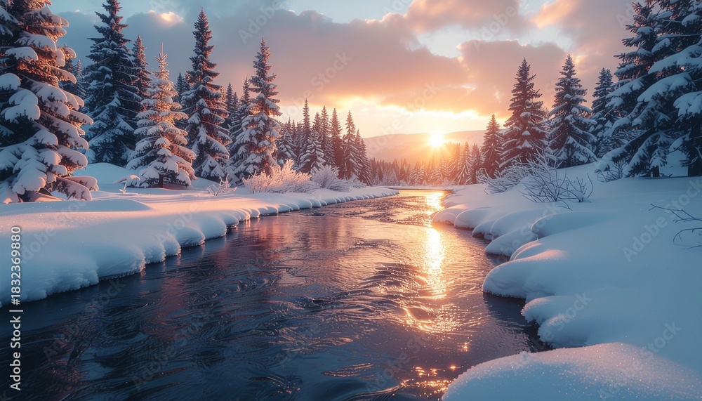 Plakat do Sypialni - Zimowy krajobraz z rzeką #1832369880