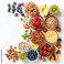 • Zestaw zdrowych przekąsek, w tym orzechów, owoców i koktajli