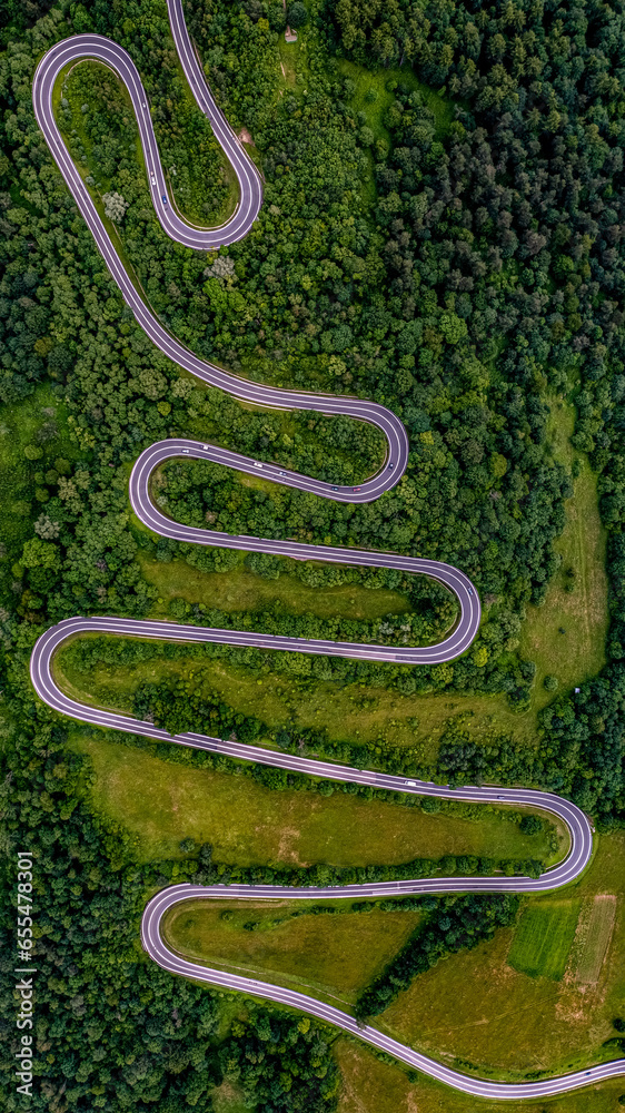 Do Przedszkola - Serpentyny Slonne topdown z drona Polska Bieszczady #655478301
