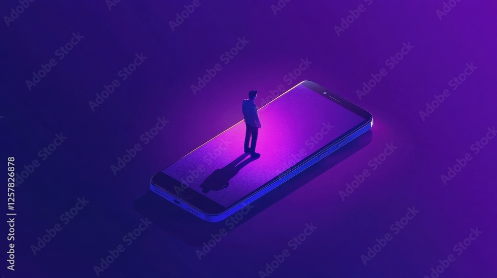 • Developer working on web app on smartphone, user offline, tiny people. Progressive web app, working offline web, PWA application development concept. Bright vibrant violet vector isolated illustratio