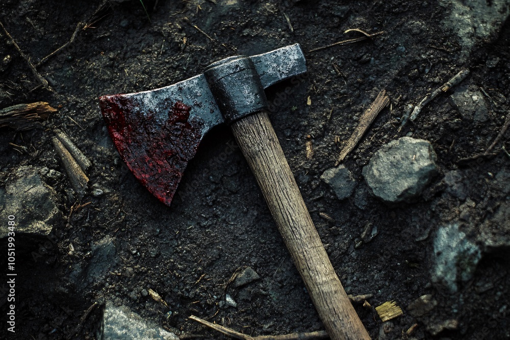 • Bloody Axe on Dark Ground Crime Scene Horror Forensics Murder Weapon