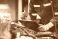 • Mechanic works on the engine of the car in the garage. Repair service. Concept of car inspection service and car repair service.