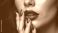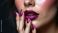 • Close-up of woman with metallic purple lipstick, matching stiletto nails. Features flawless makeup, including blush. Perfect for beauty salon advertising, cosmetic promotions, fashion blogs focusing
