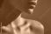 • Smooth skin close up of female neck jawline and collarbone in warm light modern minimalist studio photo healthy complexion natural beauty serene mood