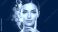 • Beauty Portrait of Woman with DNA Helix and Hexagon Pattern Overlay, Skincare and Biotechnology Visual, Cosmetic Treatment Theme, Scientific Background, Glowing Skin Close Up on Dark Studio Scene