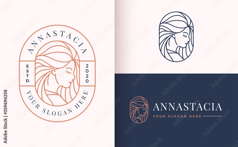 Naklejki Beauty - Line art floral women logo design #359696258
