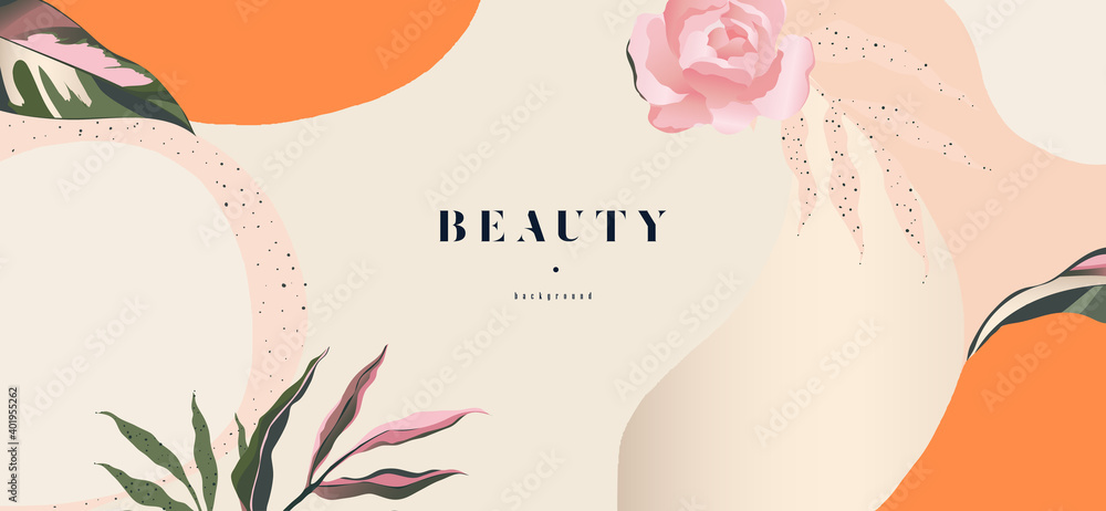 Naklejki Beauty - Abstract floral contemporary organic shapes background. Minimalist aesthetic. #401955262