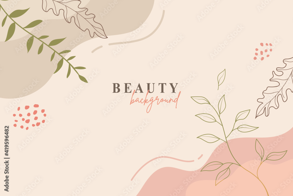 Naklejki Beauty - Abstract floral template banner. Trendy minimal organic background. Vector floral beauty backdrop... #419596482