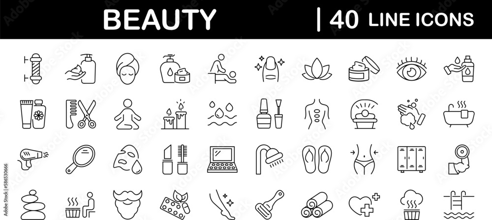 Naklejki Beauty - Beauty and Spa set of web icons in line style. Cosmetics services & Spa icons for web and mobile... #586530666