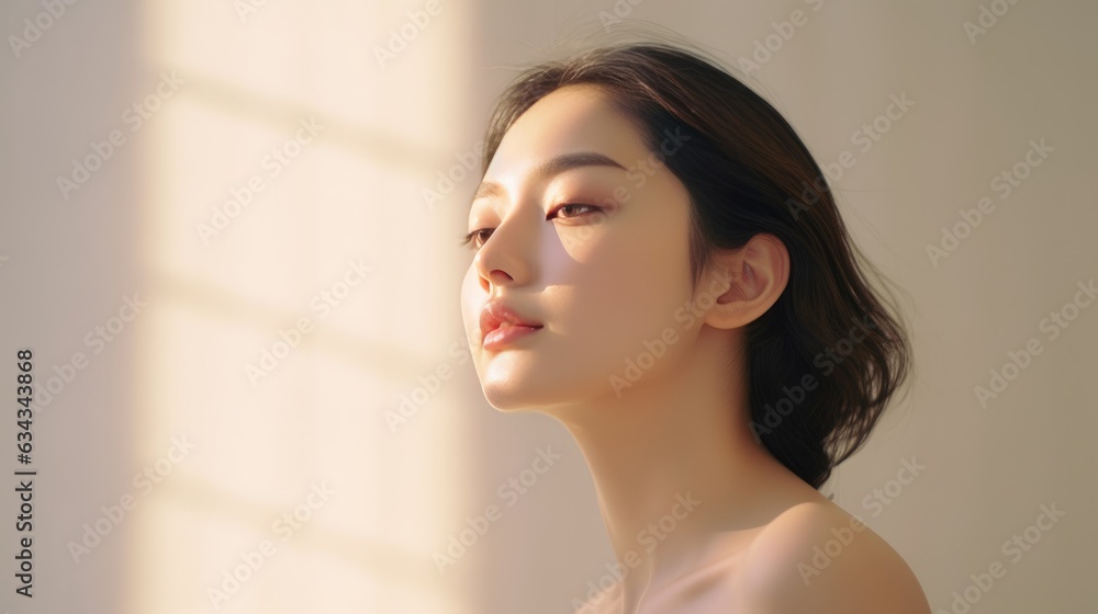 Naklejki Beauty - Portrait of beautiful young aisan woman. beauty fresh skin, wellness or cosmetic concept. #634343868
