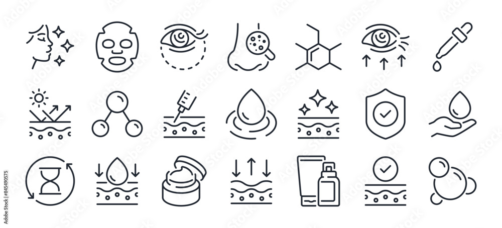 Naklejki Beauty - Skin care editable stroke outline icons set isolated on white background flat vector... #845490575