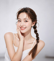 Naklejka Portrait of beauty caucasian woman with perfect healthy glow skin facial, Beauty women beauty skincare concept.Dopasuj i kup