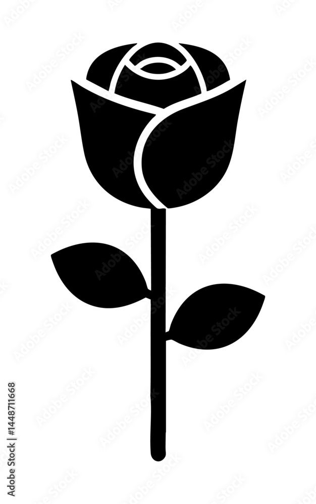 Naklejki Kwiat - Ikona róży czarno-biała #1448711668