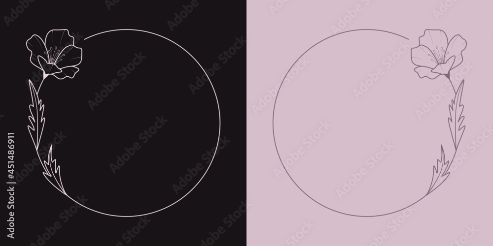 Naklejki Kwiat - Szablony ramek z wzorem roślinnym w prostym nowoczesnym stylu z listkami i kwiatami -... #451486911