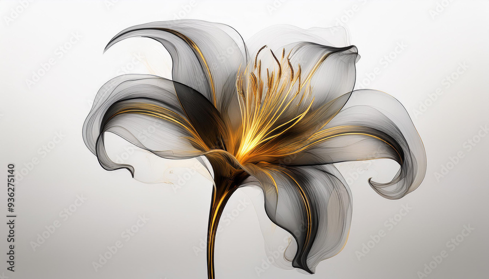 Naklejki Kwiat - Piękny transparentny czarny kwiat na białym tle, dekoracja tapeta generative ai #936275140