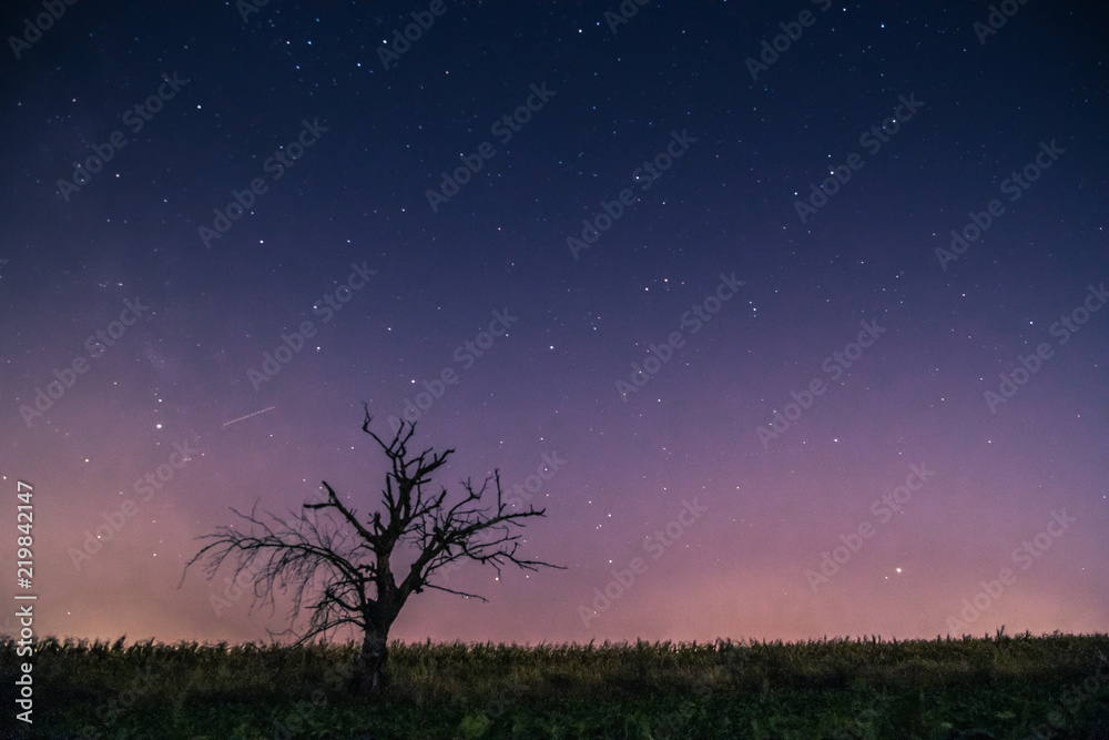 Naklejki Niebo - samotne drzewo nocą i niebo z gwiazdami #219842147