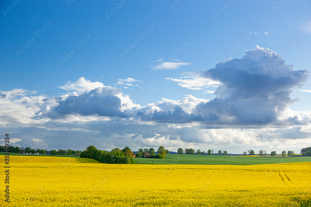 Naklejki Niebo - Rzepak - żółte kwiaty rzepaku - krajobraz rolniczy, Polska, Warmia i mazury #353149284