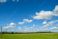 Naklejki Niebo - Piękne cumulusy małe chmurki nad polami rzepaku #616440971