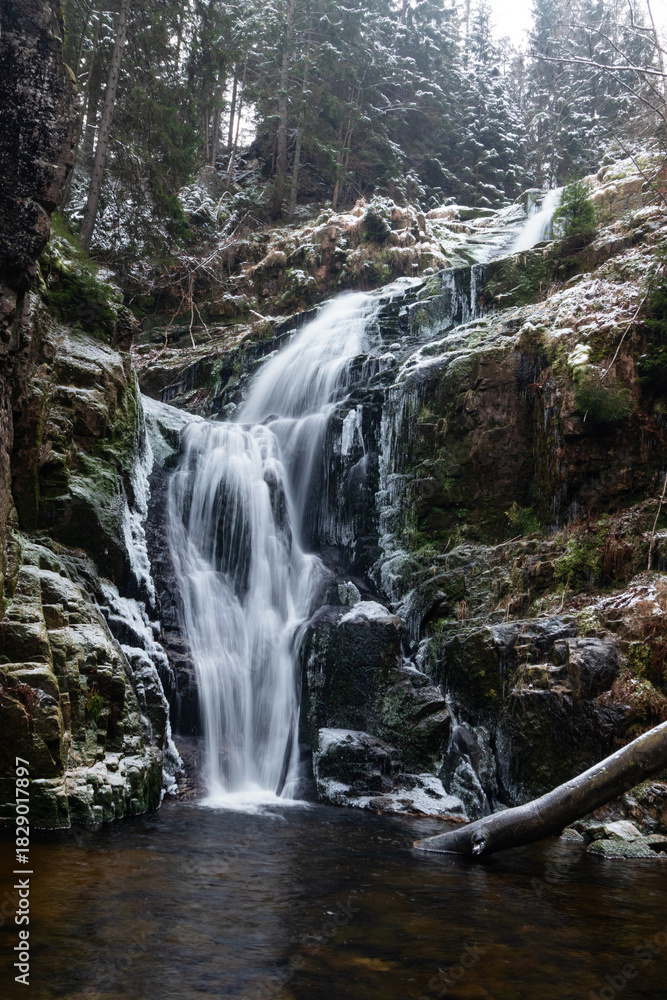 • Wodospad Kamieńczyka zimą w Karkonoskim Parku Narodowym - Szklarska Poręba. Najwyższy wodospad po polskiej stronie Karkonoszy