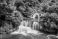• Piękny wodospad wśród zielonych drzew. Krajobraz w paku Krka w Chorwacji.