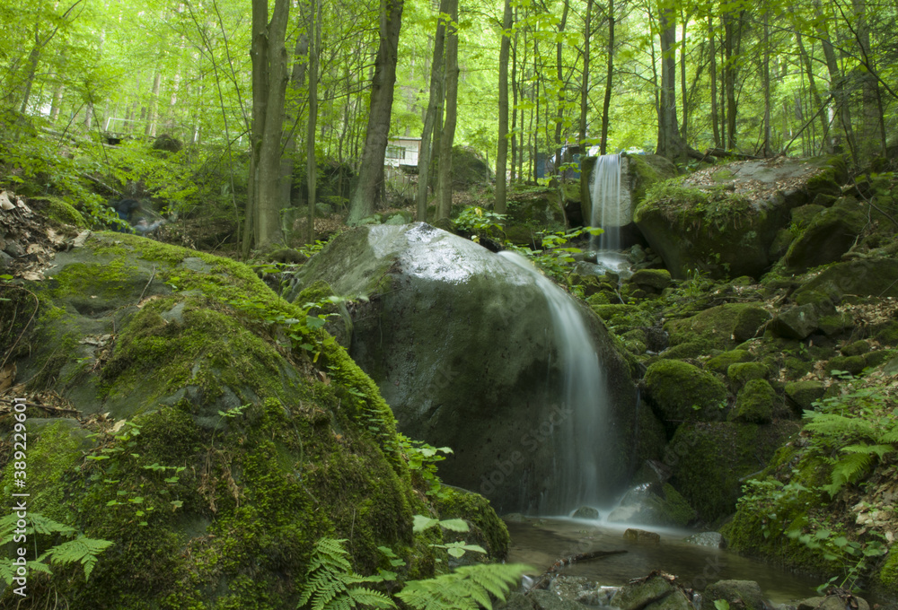 Naklejki Wodospad - mały wodospad w lesie #389229601