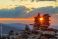 • Kamienne kopczyki o zachodzie słońca (Skalny Stół) w lato z widokiem na Śnieżkę i całe Karkonosze