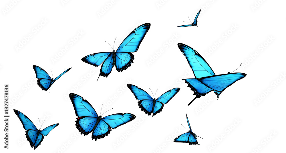 Naklejki Motyl - set de papillons bleus sur fond blanc - rendu 3D #1327478136