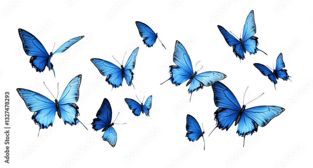 Naklejki Motyl - set de papillons bleus sur fond blanc - rendu 3D #1327478293