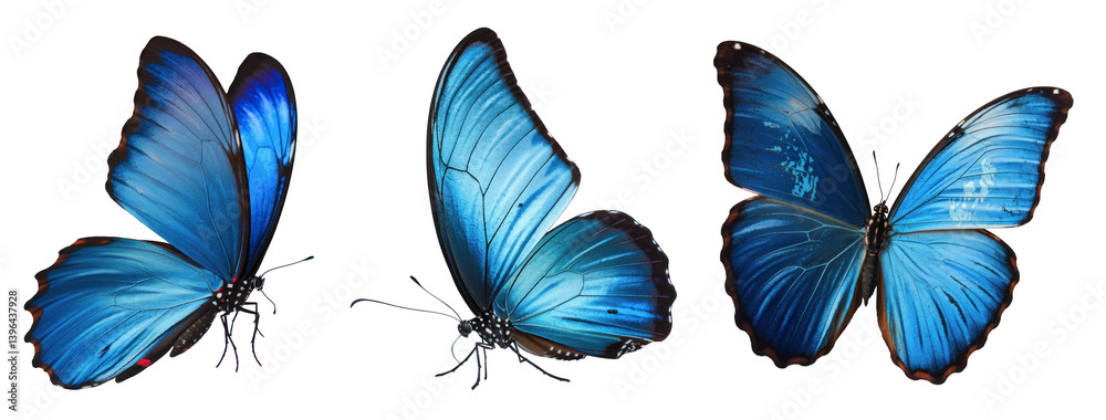 Naklejki Motyl - three blue morpho butterflies isolated on white background #1396437928