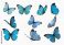 Naklejki Motyl - set of blue butterflies in detailed vector illustration style, isolated on clean background,... #1843180941