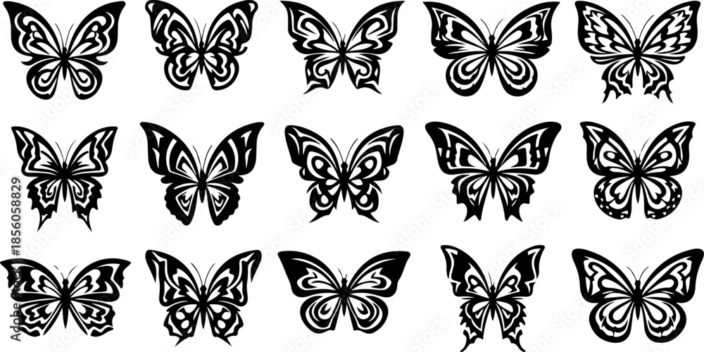 Naklejki Motyl - Monochrome Butterfly Species Collection #1856058829