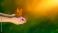 • motyl na dłoniach w promieniach słońca. Dostojka latonia