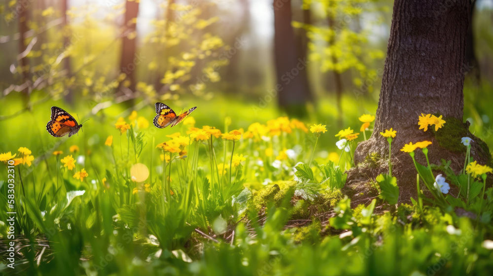 Naklejki Motyl - Papillons et fleurs de printemps #583032310