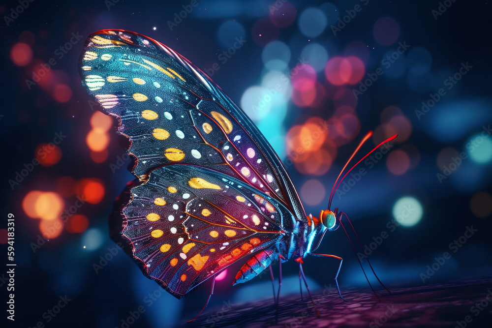 • Gros plan sur un papillon coloré éclairé de néons » IA générative