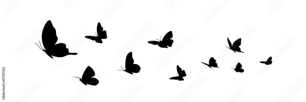 Naklejki Motyl - flock of butterflies silhouette illustration #677377632