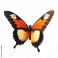 • Pełne ujęcie pięknego motyla z rozpostartymi skrzydłami, delikatnie frunącego na przezroczystym tle.