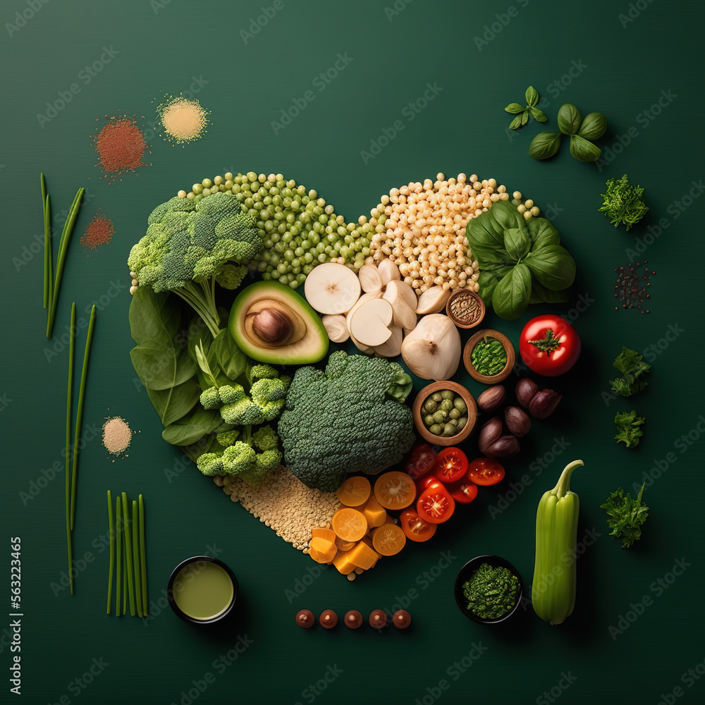 • healthy food, heart-shaped vege salad, Generative AI
